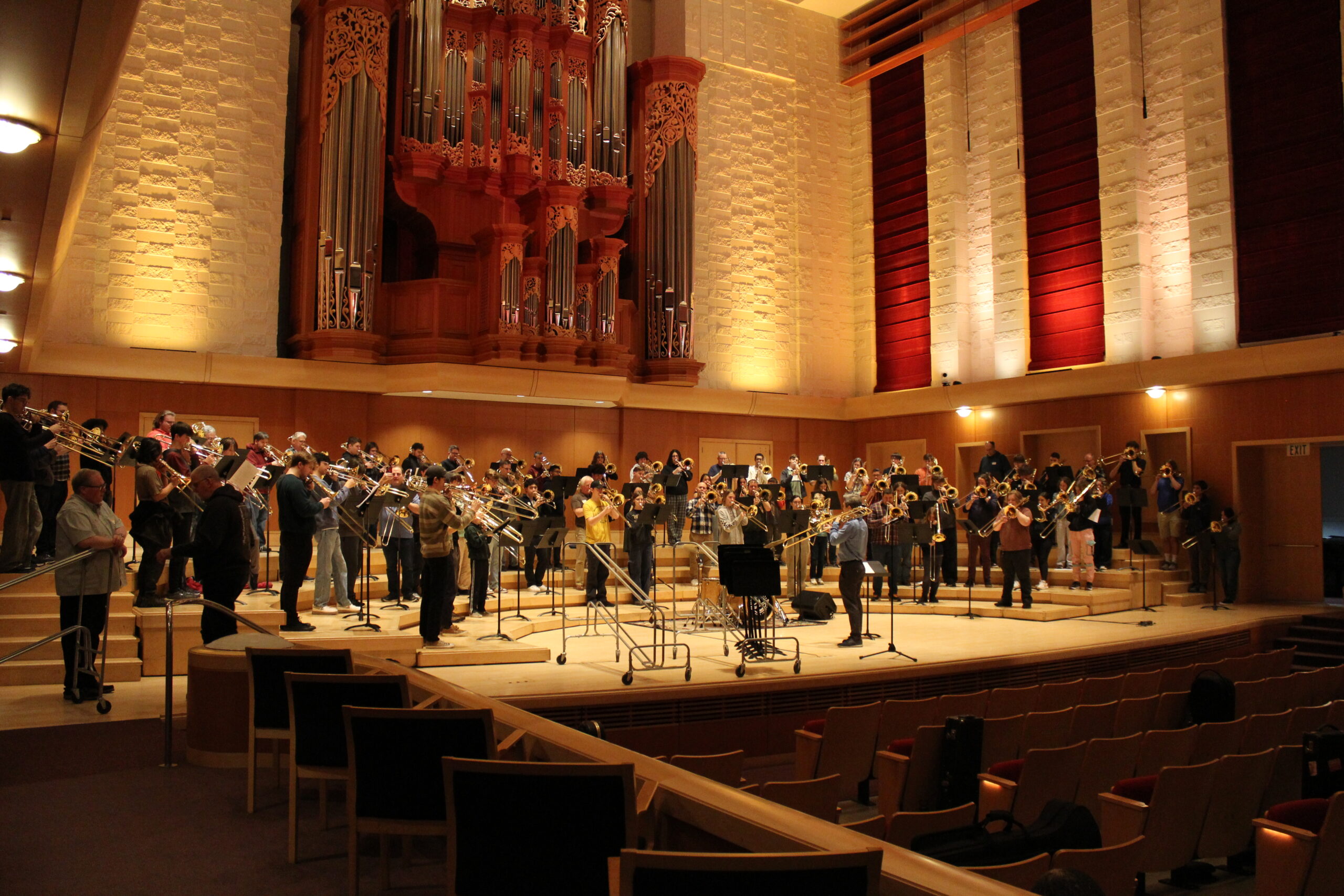 This event is especially focused on students who attend free! Adults pay a nominal fee. All attendees bring their instruments and get a chance to play and learn. BRING YOUR TROMBONE!!